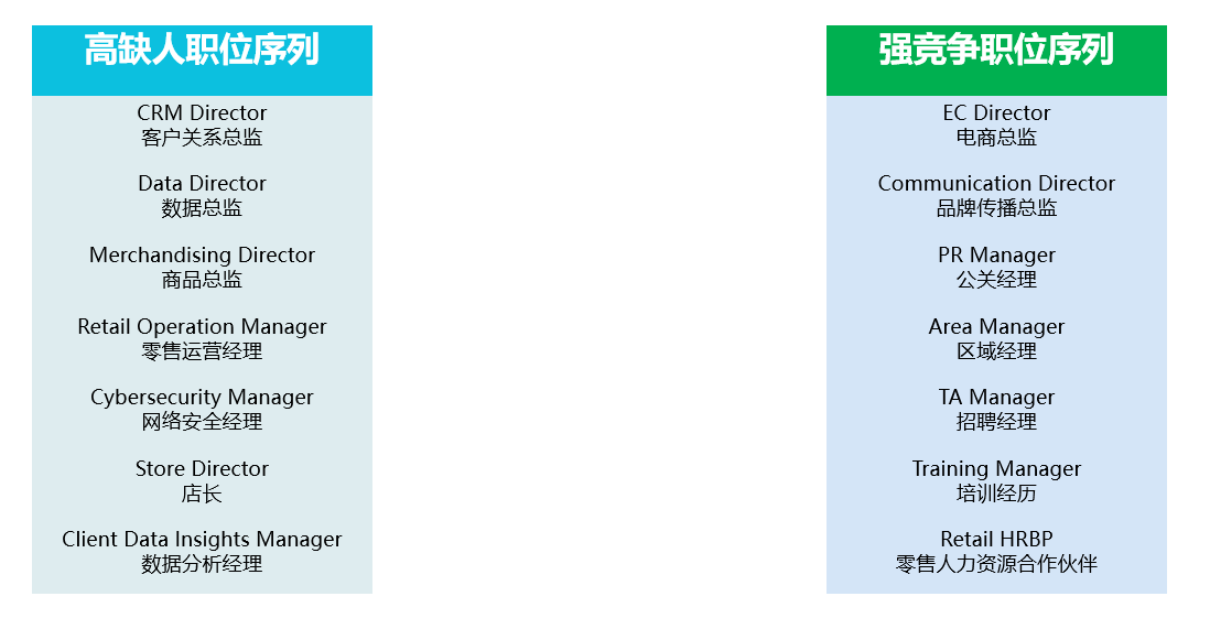 零售高缺人与强竞争的职位: